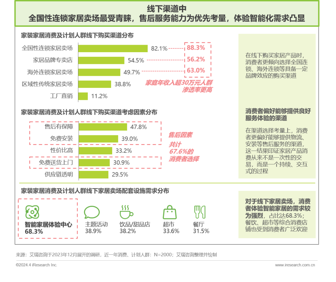 线上渠道与线下渠道共同支撑家居消费市场,售后保障为消费者核心考虑因素
