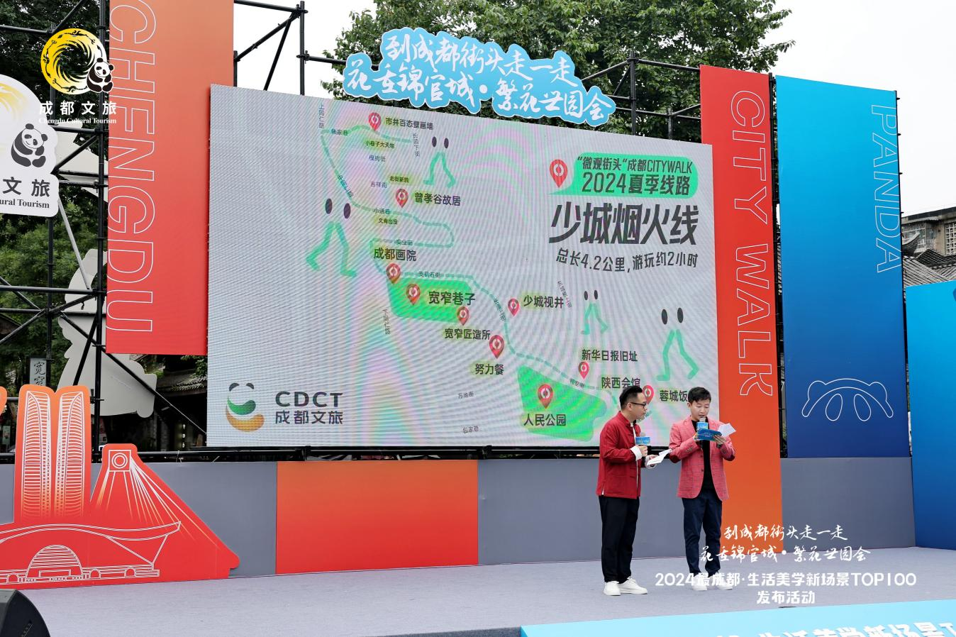 活动现场,由成都文旅集团策划制作的《“微观街头”成Citywalk2024夏季线路——少城烟火线》视频短片在现场正式发布。成都文旅集团整合旗下宽窄巷子、陕西会馆、蓉城饭店等文旅资源,联动街区片区,用Citywalk的方式,以共创共享的理念,围绕“人间烟火”这一主题,梳理编排少城片区城市历史、人文、商业、风物特色要素,以微观化视角和故事化表达,策划推出一条南起陕西街、北至焦家巷,总长4.2公里、游玩约2小时的Citywalk少城烟火线,让游客在街头烟火中将自己代入本地,“遇见有趣的人,遇见有趣的事”,体验到“资格老成都”的地道生活与独特魅力。
