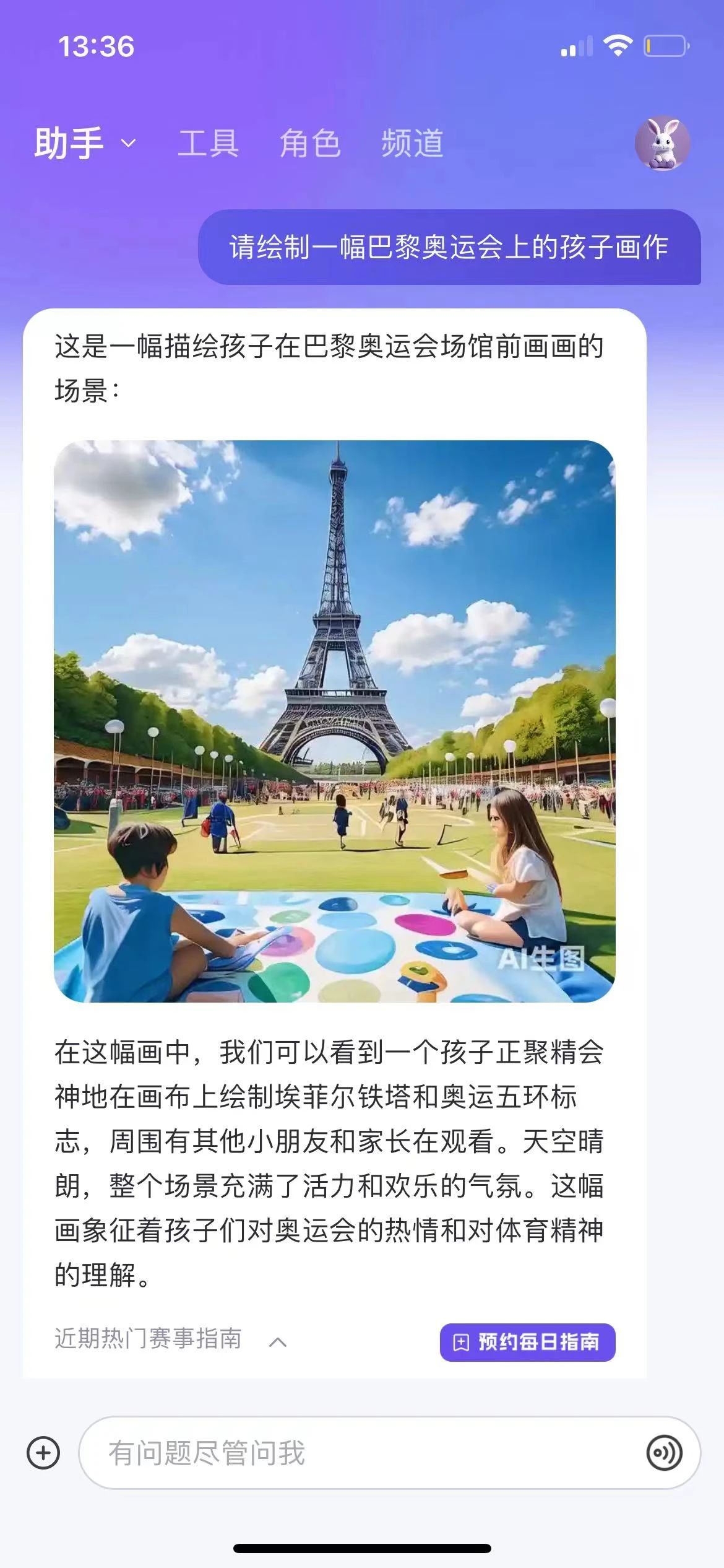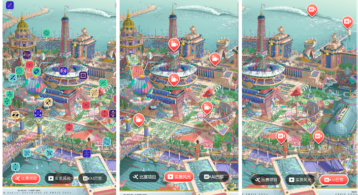 在“AI巴黎漫游”是借助腾讯混元大模型的AI技术支持,静止的奥运海报“动”了起来。据了解,巴黎奥运会和残奥会官方海报包含了上万个人物和无数个法国标志性元素,还将29个奥运项目和18个残奥项目巧妙融入图案和建筑中。