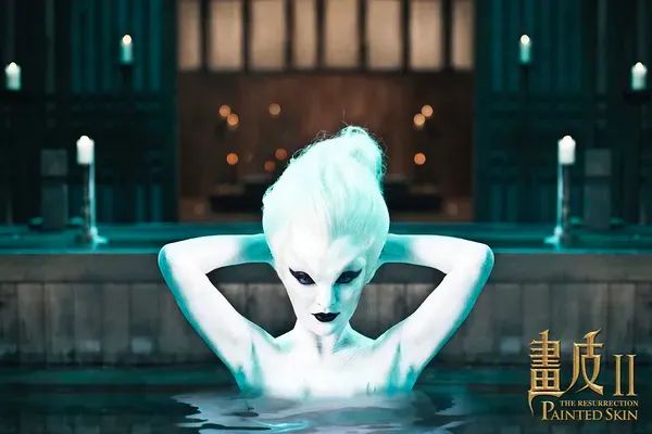可由此而来的拼贴感,也是乌尔善作品视效无法回避的痛点。《画皮2》是完全的古典奇幻风格,周迅与赵薇换皮这一经典场景集惊悚与诡奇于一体,令人难忘。但这个场景亮哇哇的白闪闪的,倒很像白雪公主里的恶毒皇后要穿上继女的人皮。中式传奇里,冷不丁来一点欧式大浓妆,杂烩来得猝不及防。更不用说费翔的大巫师了,完全是伏地魔的仿妆。J.K.罗琳不告你,那是因为她善。