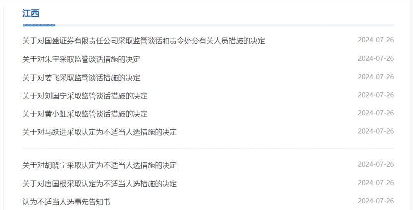 7月26日,江西证监局官网对国盛证券开出9张罚单。