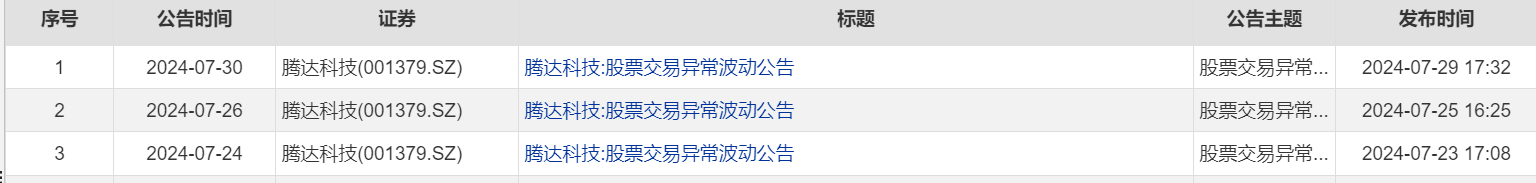 7月31日上午,腾达科技(001379.SZ)直拉再度回封涨停,上演准“天地天”板,换手率高达52%。至此,腾达科技涨停走出8连板。截至7月31日收盘,该公司股价报收于27.07元/股,市值达54亿元。自7月22日开盘价12.63元/股计算,8个交易日股价飙涨114%,市值增加近29亿元。
