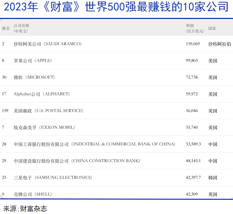 沙特阿美则是长期以来全球最大的油气公司,也是全球最赚钱以及市值最大的公司之一,拥有世界最大的陆上油田和最大的海上油田。年度利润相当于3个工商银行或者4个农业银行。