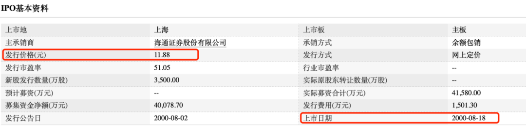 2000年8月18日,安琪酵母在上交所主板上市,发行新股3500万股,发行价格为11.88元/股。
