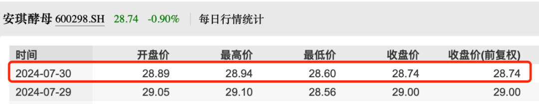 近年来,安琪酵母的股价并不尽如人意。截至2024年7月30日,安琪酵母报收28.74元/股(前复权),公司市值也一路下跌至250亿元。