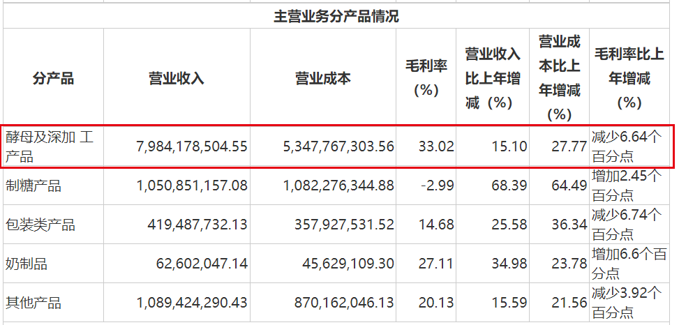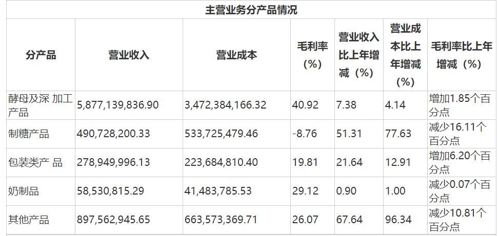 值得一提的是,2019年,酵母及深加工产品的毛利率达到40.92%,2023年相较于2019年的毛利率下滑了十个百分点。