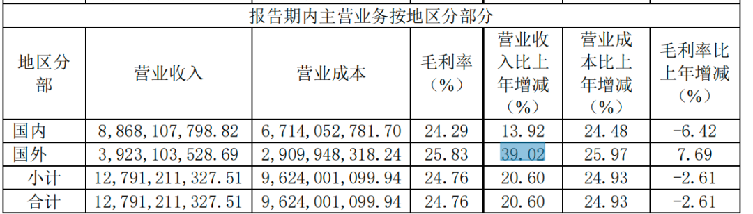 财报显示,2021年-2023年,安琪酵母的国外收入分别为28.22亿元、39.23亿元和47.86亿元,增幅分别为12.01%、39.02%和21.99%,国外市场收入快速增长。