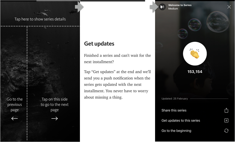同时,Medium在它的移动端App采用了Series的表达方式介绍了Series这个产品。