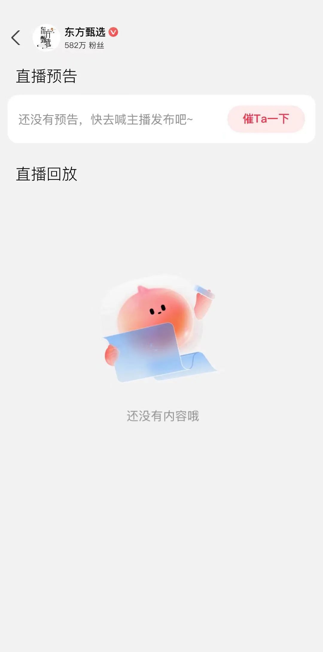 反观东方甄选在其入驻的另一大直播平台——淘宝直播的直播间,当前却已停播一个月有余,现在已无直播回放内容。要知道,2023年8月,东方甄选高调进驻淘宝直播,引发的热度实属不小,从彼时至今还不满一年。