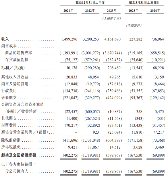 就财务数据来看,2021年至2023年及2024年前3月,正力新能分别实现收入14.99亿元、32.9亿元、41.62亿元及7.37亿元,2021年至2023年收入复合年增长率达到66.6%。