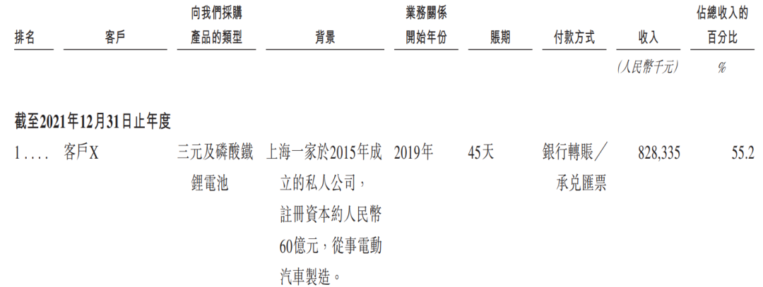 根据招股书对公司X的描述“2015年在上海成立的电动汽车厂”,“注册资本60亿元”的条件,此客户疑似是威马汽车。对此,「子弹财经」试图向正力新能进行求证,但截至发稿未获回复。
