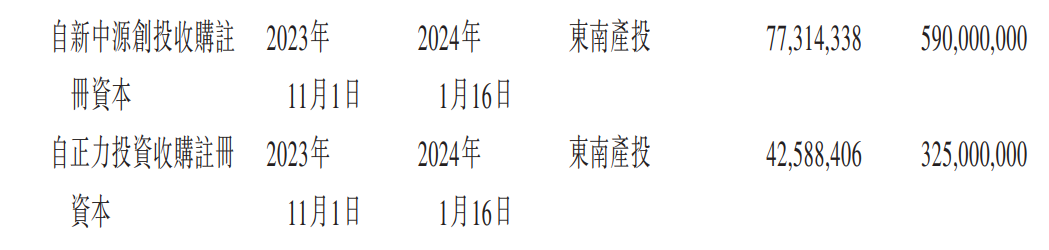 2023年11月,新中源创投和正力投资分别向东南产投转让7731.43万元注册资本、4258.84万元注册资本,分别套现5.90亿元及3.25亿元,累计套现9.15亿元。