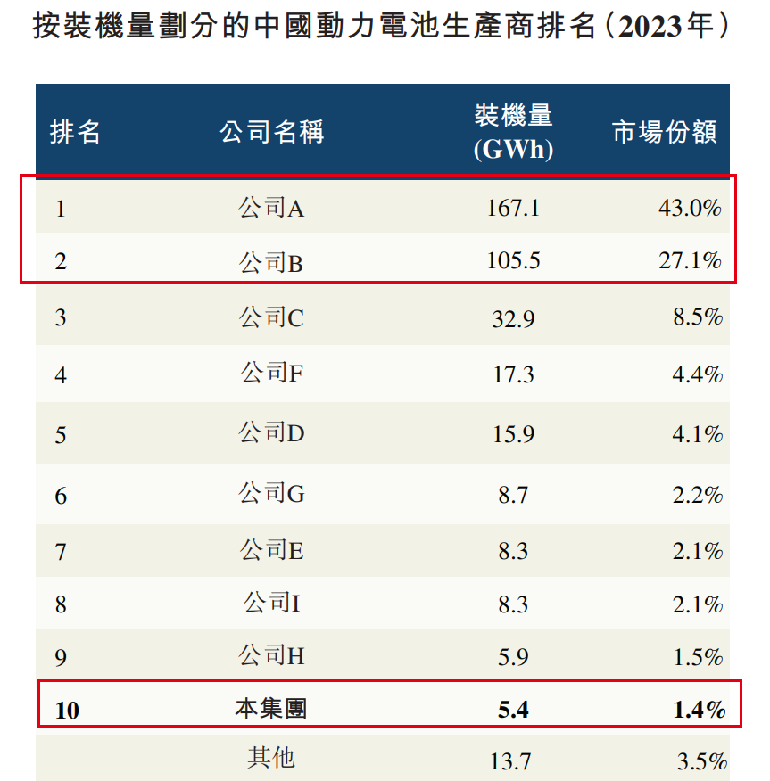 在曹芳和陈继程的领导下,正力新能也在行业内占据了一定地位。根据中国汽车动力电池产业创新联盟、弗若斯特沙利文资料,2023年,集团动力电池装机量为5.4GWh,在中国动力电池生产商中排名第10,市占率1.4%。