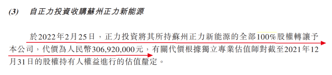 例如,2022年2月,正力投资向正力新能转让苏州正力新能源100%股权,套现3.07亿元。