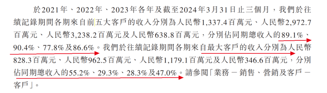 其中,来自最大客户的收入分别占同期总收入的55.2%、29.3%、28.3%及47.0%。