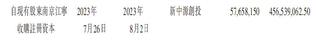 入股仅一年后,就有投资者选择了撤退。2023年7月,南京江宁将在A轮融资中获得的全部注册资本转让予新中源创投,套现4.57亿元离场。
