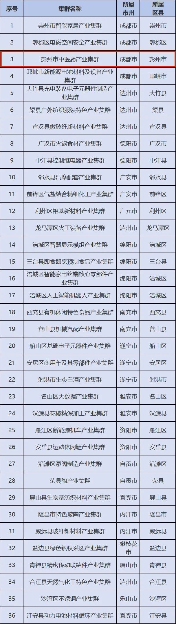 近日,2024年度四川省中小企业特色产业集群名单已公示,全省共36个产业集群入选该名单,成都有4个产业集群入选,其中彭州市中医药产业集群入选名单。