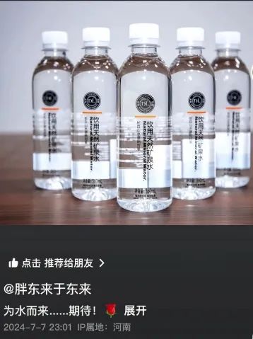 近日,胖东来创始人于东来在抖音平台发布了一款360ml DL天然矿泉水产品,并配文“为水而来,期待”,正式宣布进军矿泉水赛道。目前该产品还没有上市,价格未知。