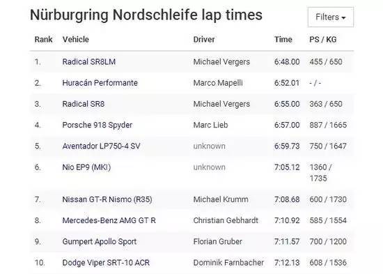 2017年的3月2日,兰博基尼旗下新车Huracan Performante大幅度刷新了保时捷918 Spyder创造的“真理之环”6分57秒原记录,将最新记录提升到了6分52秒01。