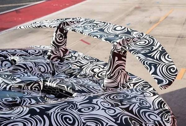 车尾尾翼也是组成主动空力套件最为重要的一部分,采用锻造碳纤维打造,尾翼的两根支柱是空心的。