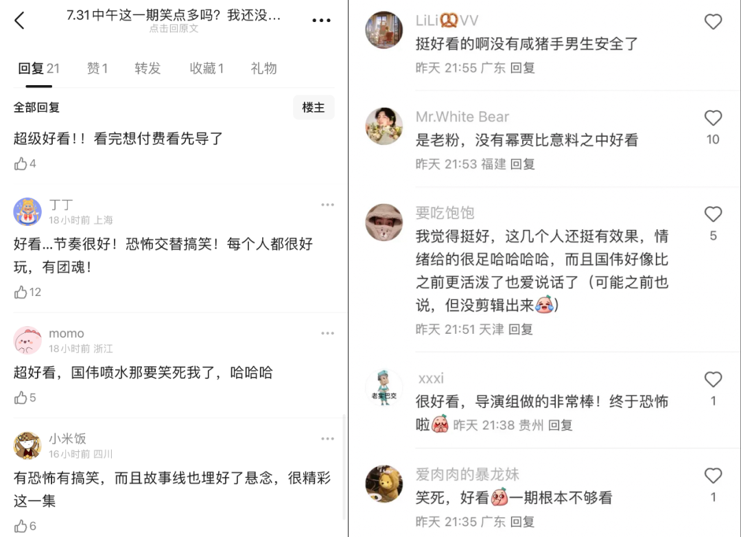 而很有意思的是,犀牛君观察到,最近节目开播后舆论场出现两种声音,一些观众对于单独付费超前聚会表示不满,但不少人又对第一期微恐体验与欢乐氛围兼备的内容拍手称快。