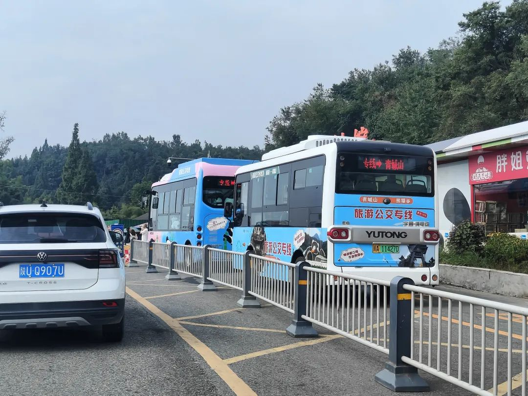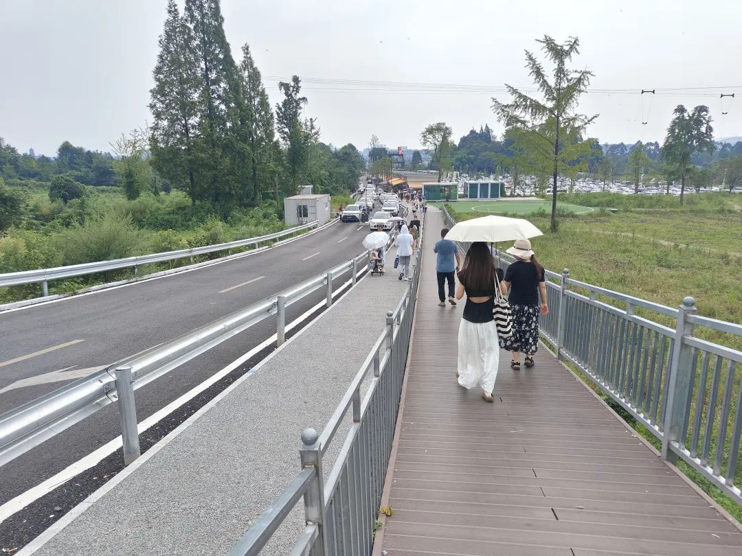 “我们所做的工作,是向游客提供安全通畅的交通环境。一位游客来到熊猫谷,如果是乘坐私家车,就停放在对面的停车场;如果是乘坐网约车或出租车,就在指定的点位下车。然后穿过停车场门口的人行横道,步行一小段后进入景区,这样就有效避免了人车混杂、拥堵不堪的情况发生。”尹肖介绍道。