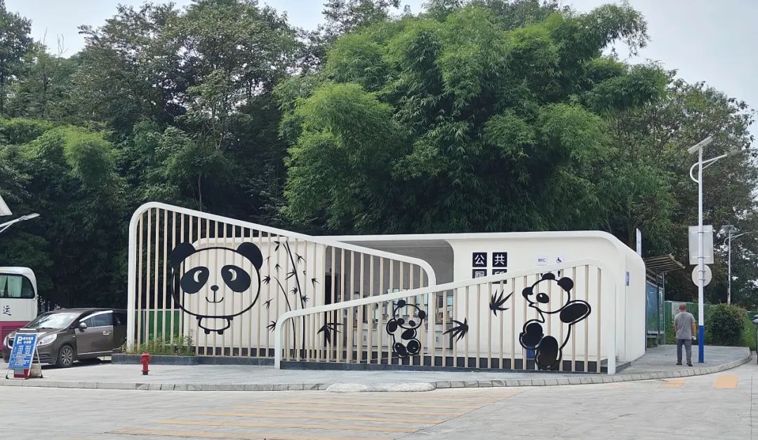 在熊猫谷一侧不远处,新开业的熊猫集市美食街人头攒动,一派热闹景象。“熊猫美食”“熊猫茶饮”“熊猫伴手礼”等精致的网红小店目不暇接。新投入使用的熊猫公厕也是自带“萌”味,还有人在此拍照打卡。游客在看了大熊猫后,尽情品尝美食,尽享欢乐时光。