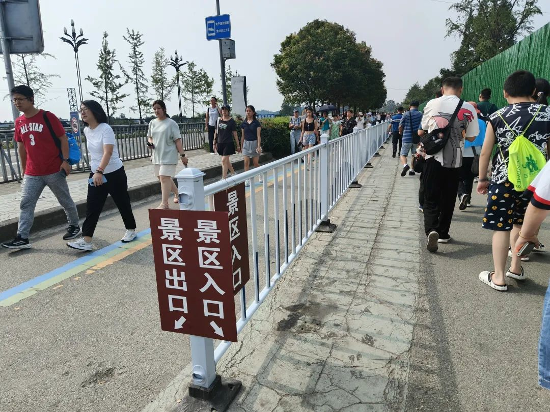 8月2日上午10时左右,熊猫谷门前游人络绎不绝 ,兴致勃勃地进入景区。虽然道路上的车辆、行人非常多,但进出有序,没有出现拥堵等现象。网约车、出租车、景区直通车、私家车停放区域合理划分,各类交通标识醒目,周边交通情况井然有序。“上周,我们协调熊猫谷在大门口设置了隔离栏,让游客不在门口横穿马路,造成拥堵;同时在人行道中间设置了隔离栏,让进出熊猫谷的游客有序地分道而行。”玉堂街道办副主任尹肖表示。
