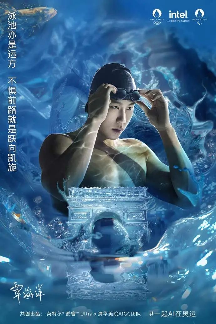 英特尔推出创新项目——利用 AI 诗人技术,为每一位夺冠的中国运动员量身定制一幅中式浪漫画卷。当覃海洋在泳池中奋力一搏,最终触壁夺冠的那一刻,英特尔酷睿 Ultra和清华美院 AIGC 共创的 AI 诗人,迅速捕捉并分析这一激动人心的场景,结合中国传统文化元素,生成一幅富含诗意与画意的画卷。(品牌官方)