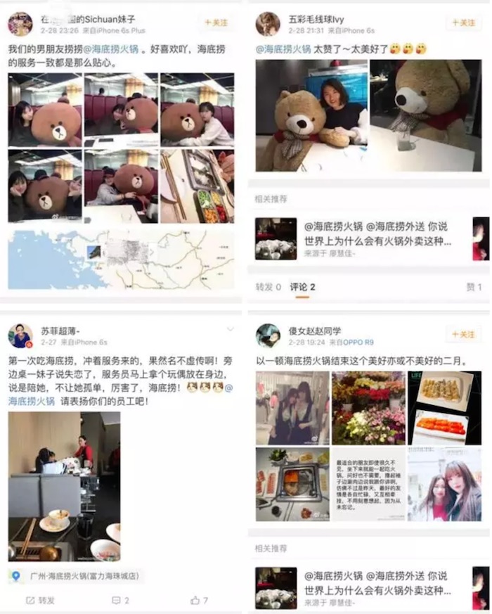 比如,针对单身狗的温暖措施,已经成为很多人PO微博和朋友圈的新主题。不得不说,为了跟90后95后甚至00后打成一片,海底捞真的很拼。