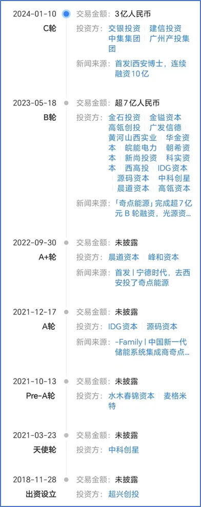 在天眼查上看到,奇点能源2023年5月份超7亿元的B轮融资有多达16家投资机构参与。投资者中不乏高瓴、IDG等著名投资机构和广州产投这样的地方引导基金,还有宁德时代的晨道资本。