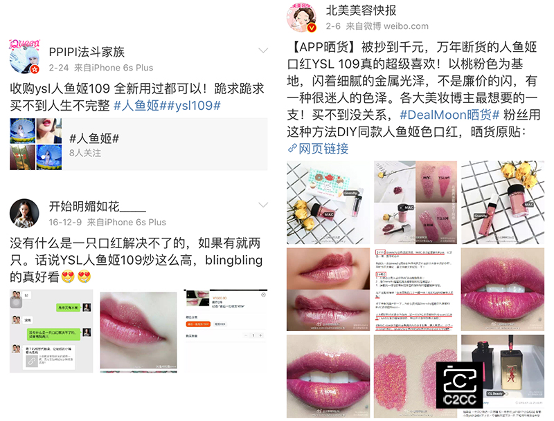 说到饥饿营销,这里不得不提的是一个例子是,YSL于去年推出圣诞限量版方管唇膏星辰系列,产品一上架便在一小时内售空,且在代购、网购、写手等不遗余力的推动下,原本不温不火的它却在一夜间自带话题,“叫男朋友送YSL星辰体”席卷微博、朋友圈等社交平台,致使价格最高被炒至20倍!