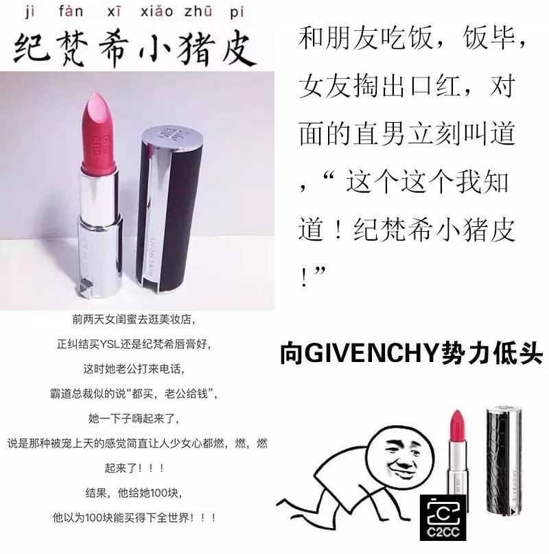 本土品牌可以借鉴外资品牌的爆款策略。以纪梵希小羊皮为例,其包装采用羊皮故称“小羊皮”,被网友调侃是卖包装的,除黑色基础款外还出了粉色、薄荷小羊皮。因某日杂海报种草无数的#315断货王曾在微博上轰动一时,后在Angelababy等明星的示范下不断被扒出,提及率之高令诸多男士都略有耳闻,于是也出现了此后的直男梗系列,类似“小猪皮”、“小鸭皮”等绰号,期间更带火了其他品牌,如TFboys口红、CPU 口红、以色列唇膏、奥迪双钻变色龙、阿尼玛口红等等,热度未褪之际又被扒出神似款垃圾桶……