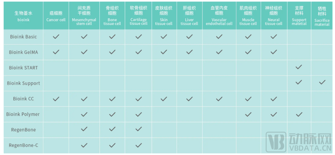 捷诺飞旗下生物墨水的应用领域 图片来源:企业官网