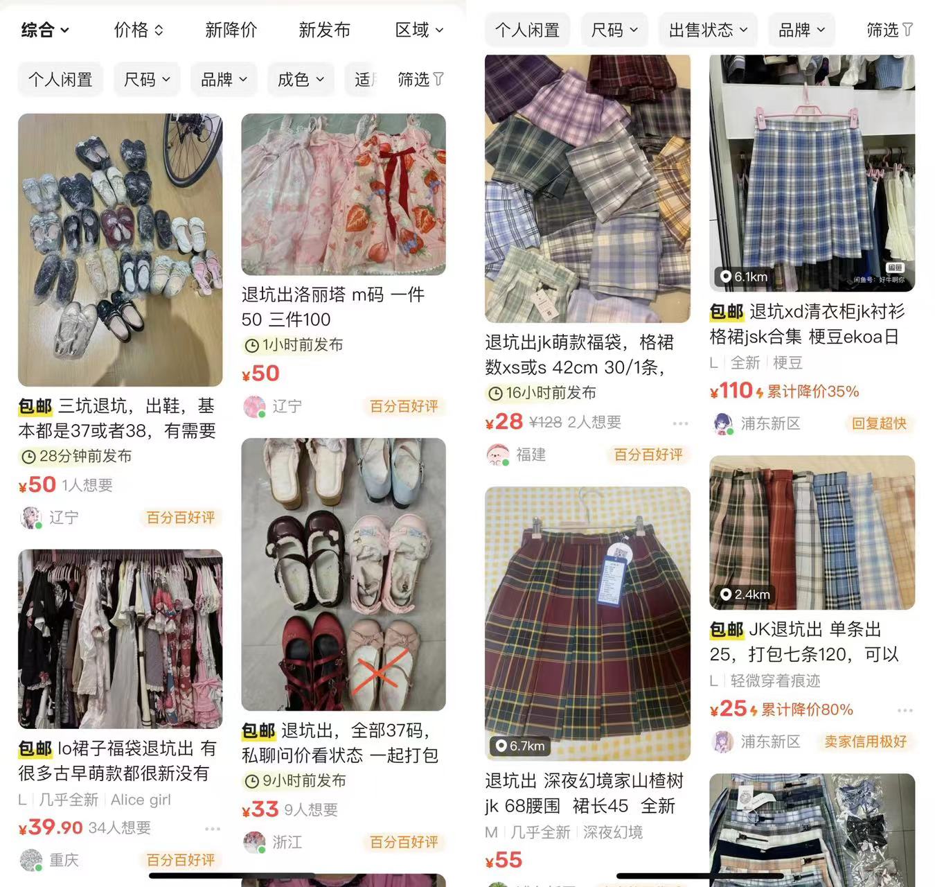 但消费潮流瞬息万变,2022年开始,三坑消费热潮冷却,行业经历寒潮,无数知名品牌商家接连宣布闭店,一件件曾经需要掐点抢购的服装,成为闲鱼上退坑回血的低价商品。