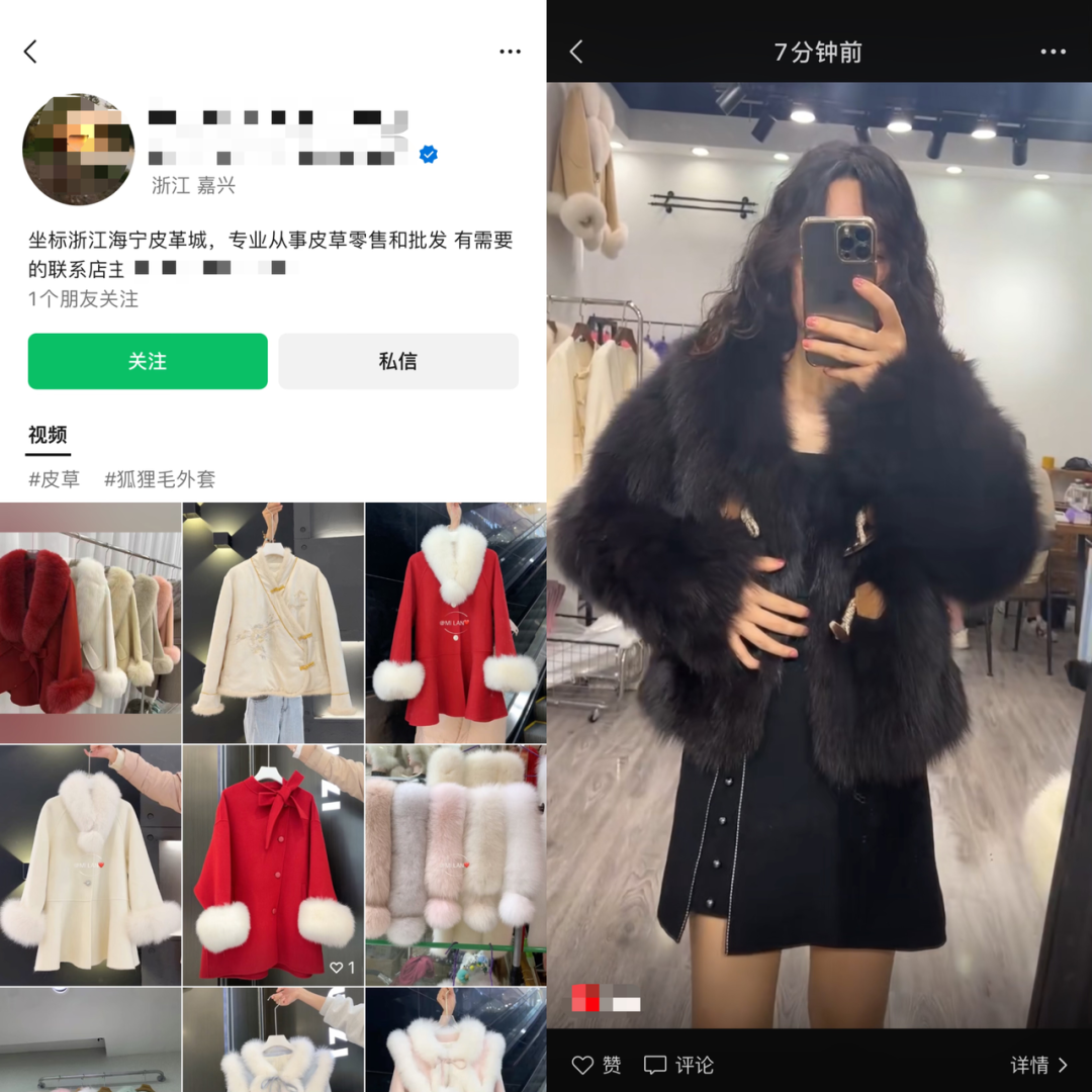 相比之下,皮草商家压力就不小。一位在海宁皮革城有线下生意的皮草商家就表示,皮草的客单价高,多数在千元甚至万元级别,遇上持续消费理性谨慎的消费环境,哪怕是反季打折也不太好卖。而在线上,自己也主要是通过微信私域卖货,至今没有尝试直播,渠道单一、主要靠老客复购的销售模式,又增加了一重压力。
