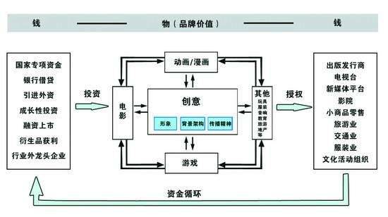 互联网讲究“蓄水养鱼”,等拥有的足够多的流量和核心用户时,官方要出周边乃至让IP去动画化也好,影视化化也好,都是近水楼台先得月的事。这是国漫的核心,也是未来它的竞争力所在。最后附一张动漫当前在中国的产业模式,用来论证,信息时代,内容和创意永远是第一生产力。