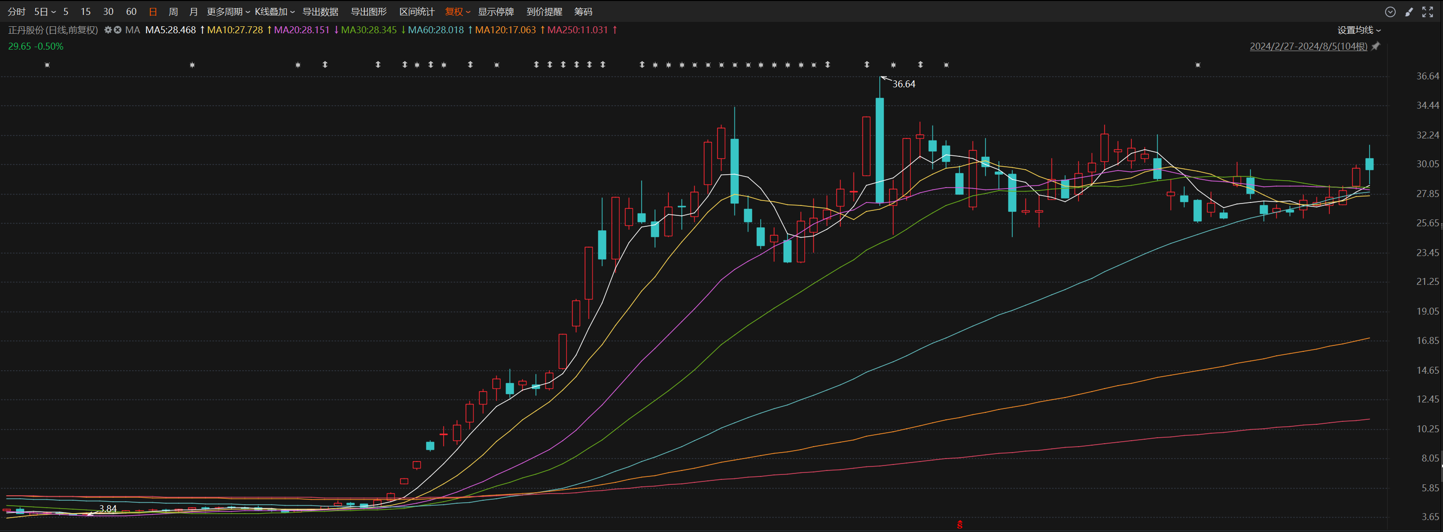 8月6日早盘,10倍大牛股正丹股份(300641.SZ)股价大幅低开14%,截至发稿,盘中跌超10%。