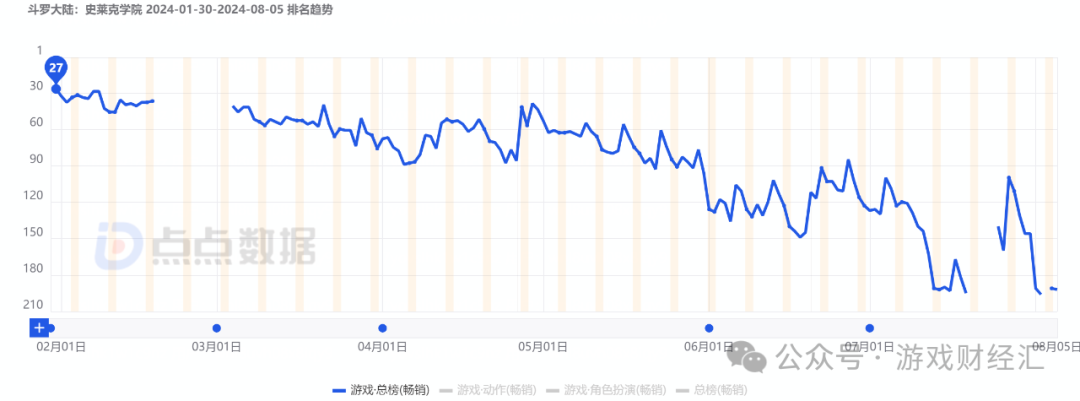 从产品表现来看,《斗罗大陆:史莱克学院》高开低走,目前已掉至iOS游戏畅销榜150名开外,而上线3年的《斗罗大陆:魂师对决》排名仍在120名以内。