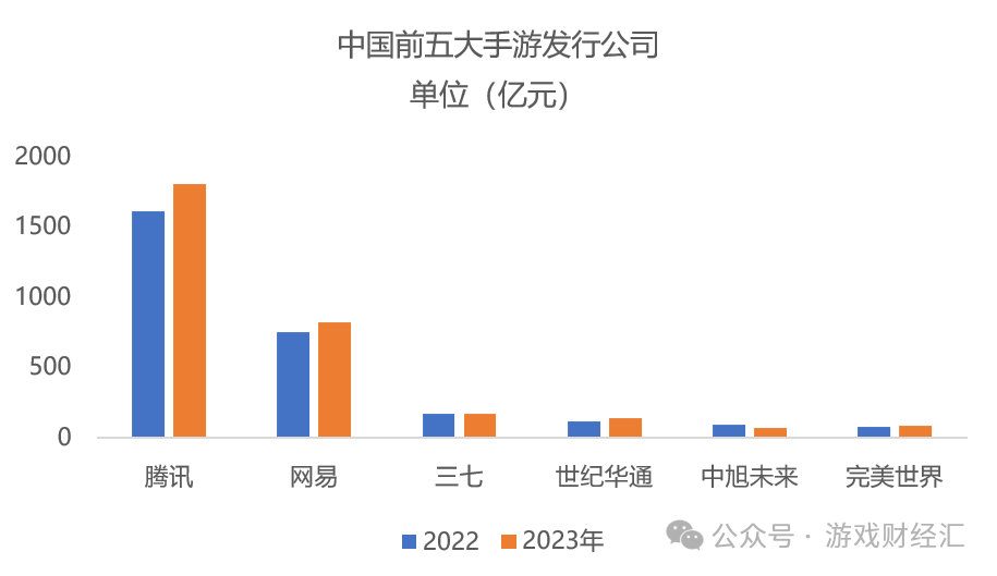首先,收入出现下滑。尽管中旭未来在2022年是中国第五大手游发行公司(仅统计上市公司),但在上市的第一年,其收入出现了大幅下滑,被完美世界超越,排名降至第六。