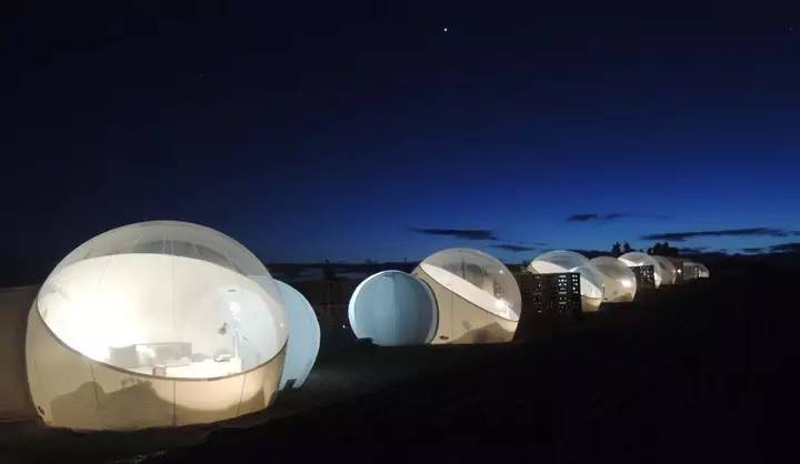 客户可以选择帆布、圆顶、气泡、蒙古包和热带别墅帐篷等酒店外观,选择床、座垫以及浴室设施等酒店内部环境。