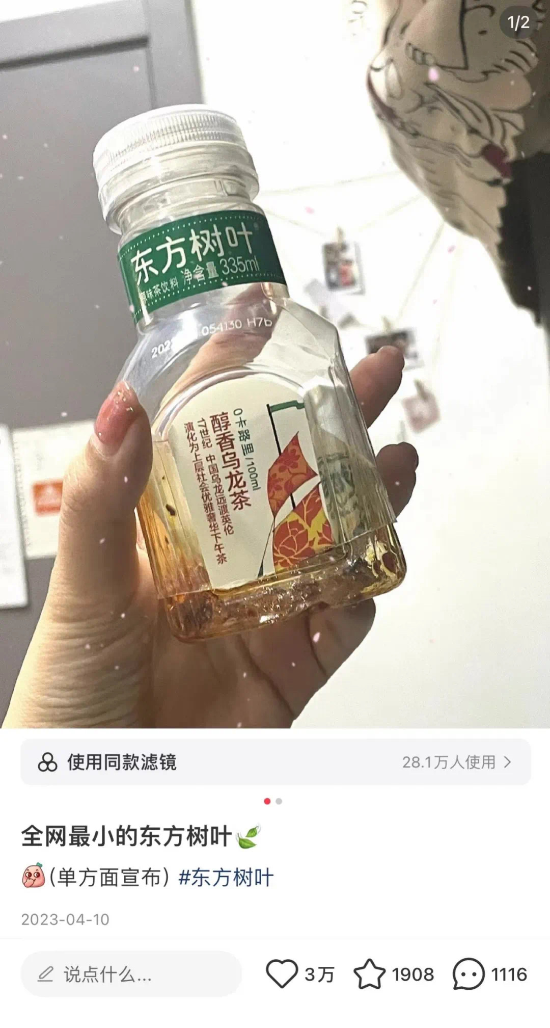 在小红书,小包装有着较高的热度。如小包装的东方树叶颇受欢迎,甚至有网友将335ml的东方树叶DIY变成更小包装。这篇以“全网最小的东方树叶”为主题的贴文,就有3万个点赞量,1900多个收藏以及1000多条评论。