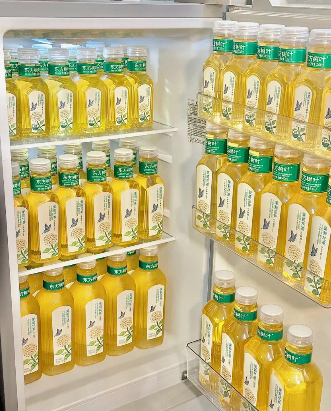 2023年,年轻人对大包装饮料关注度越来越高。东方树叶于当年年初在天猫旗舰店上线了900ml的大瓶装。到今年,东方树叶900ml大瓶装已经在线下渠道铺开,甚至占据了货架C位。
