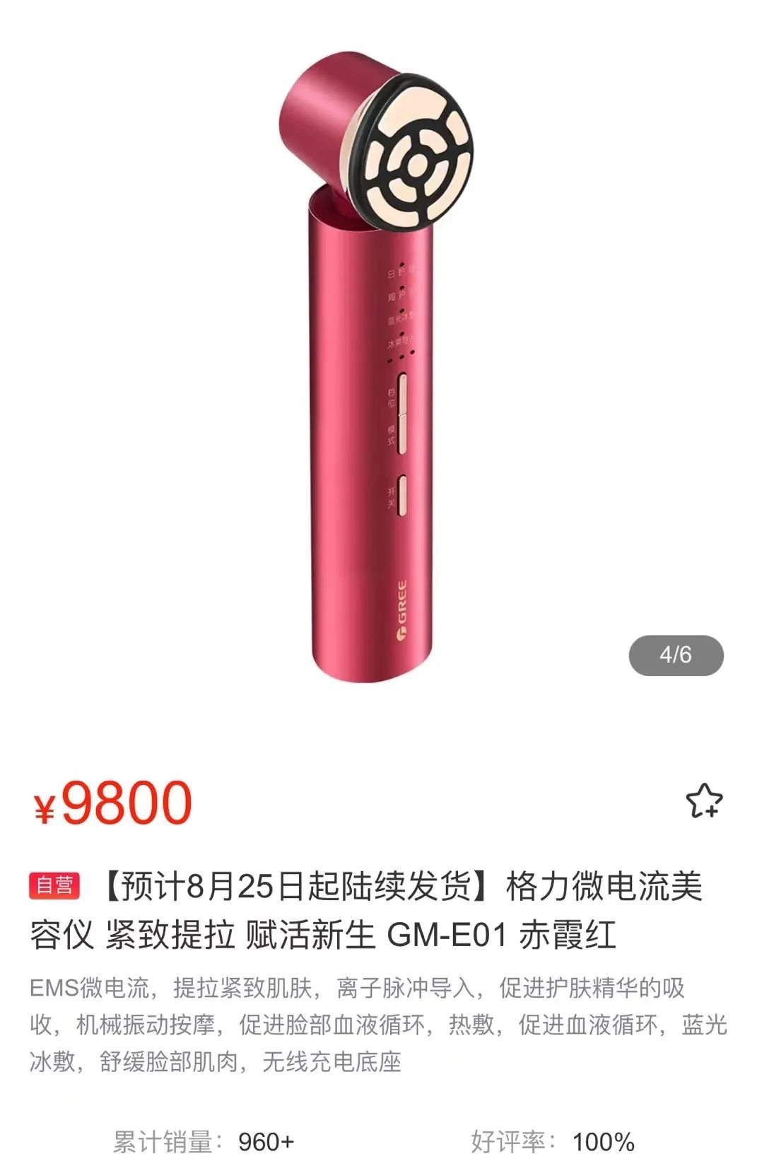 《化妆品观察》在格力董明珠店(微信小程序)搜索发现,该店近日上新了一款名为“格力微电流美容仪”的产品,售价9800元/件。