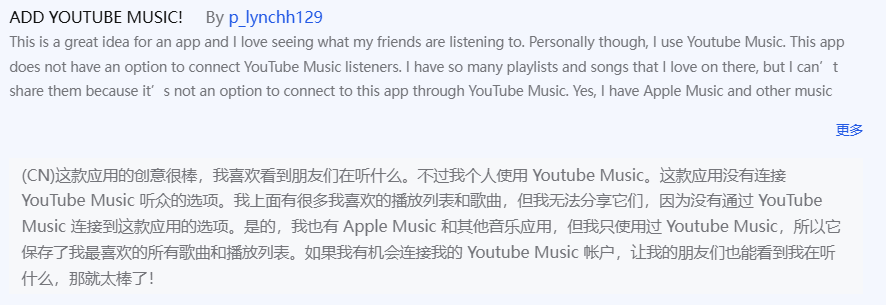 (用户对于连接Youtube Music的需求强烈)