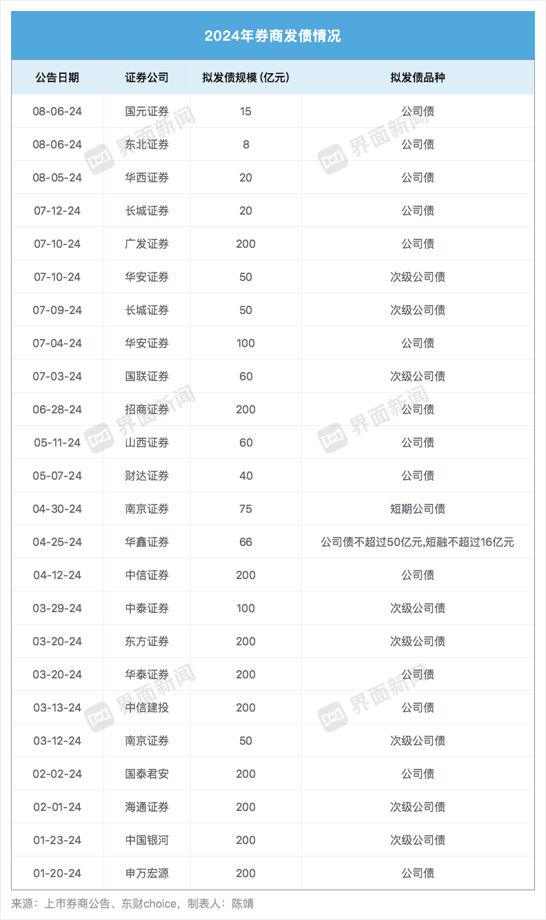 相较前两年的高歌猛进,2024年券商债券融资有降温趋势。