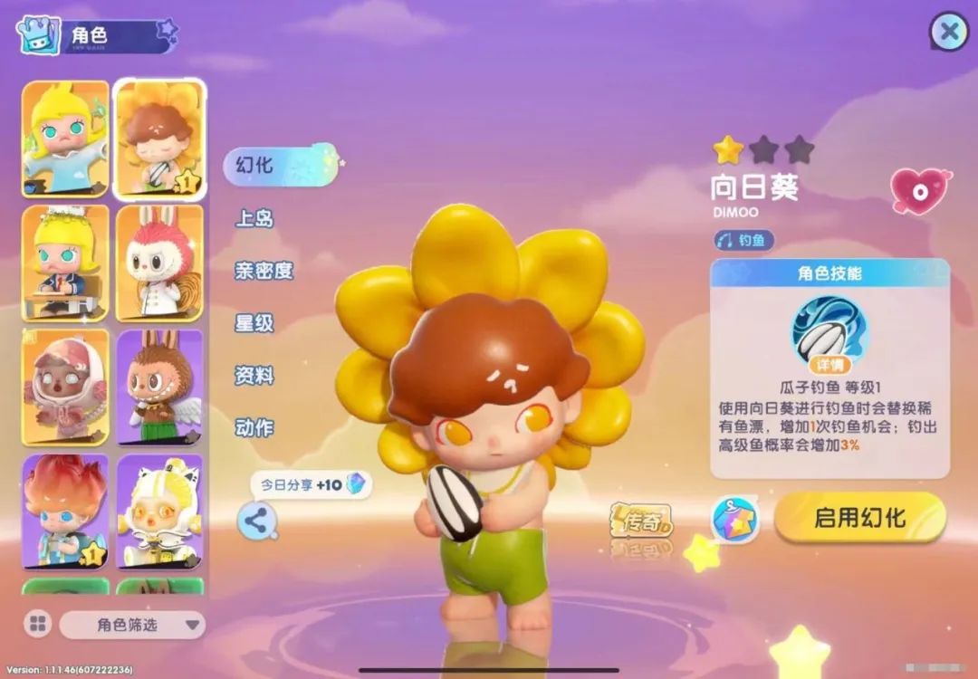玩家通过各种劳作来建设自己的家园时,会遇到不同形象的角色们,通过幻化成他们则能获得较大的操作便利性。比如“升空奇遇记”Molly可以同时播种和收获4块农田,“喷射男孩”Dimmo可以帮助角色跳得更高,“野兽”Labubu可以提升玩家移动速度……这些形象全都来自于泡泡玛特旗下角色的盲盒形象,它们有着庞大的粉丝基础。