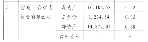 青岛上合智尚投资有限公司成立于2020年6月19日,法定代表人朱炳强,注册资本30000万元,青岛胶州湾宏科置业有限公司持有100%股 权。
