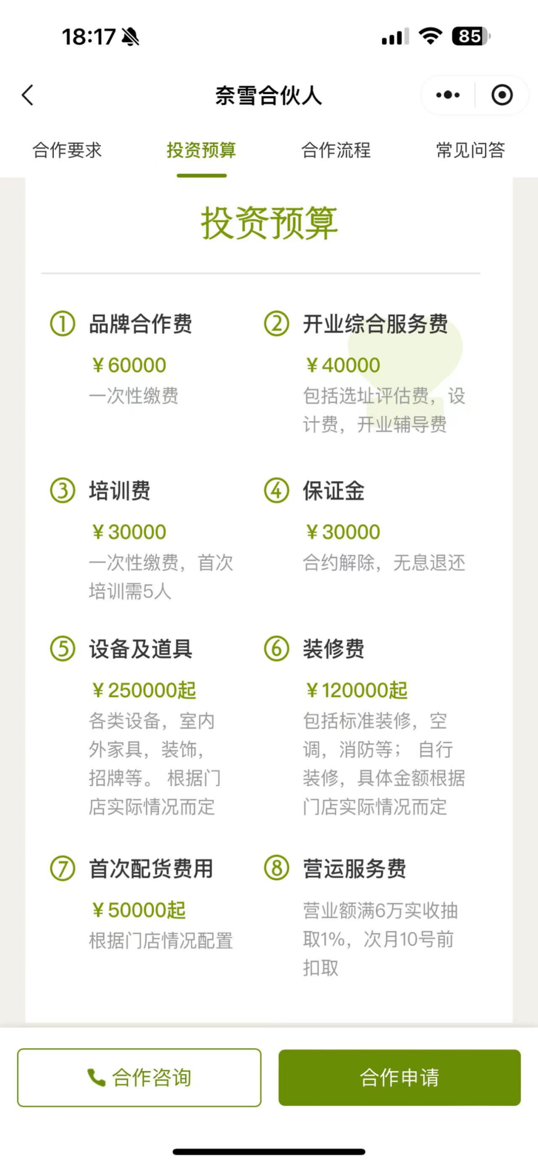 今年2月,奈雪降低了加盟门槛,加盟店也摒弃了大店模式,加盟一家奈雪的茶需要有40平方米左右的门店、单店投资金额调整至58万元。