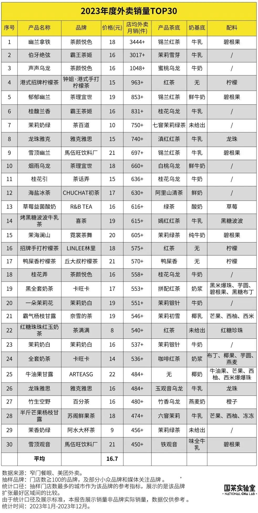 自2021年推出“油柑”系列产品后,奈雪后续再无“出圈”产品,其最出圈的“霸气”系列从品牌成立初始便一直存在,此后围绕水果种类“换汤不换药”地进行推新。根据窄门餐眼与美团外卖的数据显示,奶茶单品TOP30中,奈雪的茶仅有1款上榜。